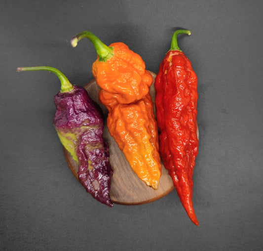A selection of hots and super hot pepper seeds used for sauces, competition...